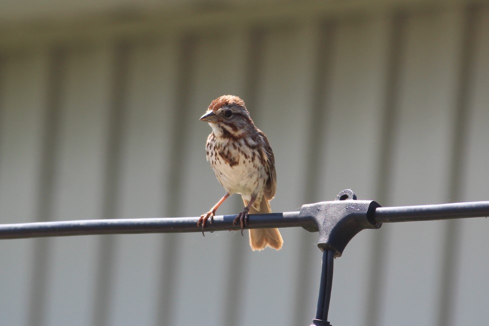 Another bird caught my attention in my parents’ garden by its beautiful song. I should have guessed its identity right then and there, since it turned out to be a Song Sparrow, but I’m very cautious in IDing small sparrows or sparrow-like birds in the field. Recently I’ve come to appreciate the diversity of these types of birds.