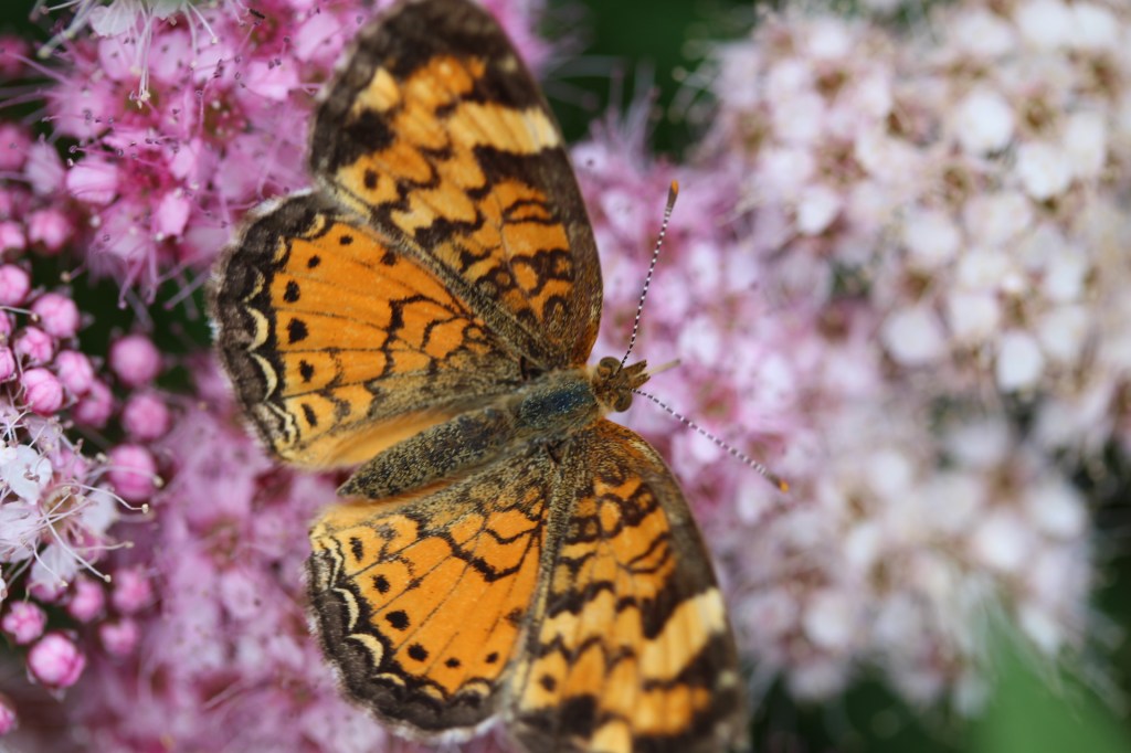 And in the garden I managed to photograph a beautiful Northern Crescent (Phycioides cocyta) drinking nectar from flowers.