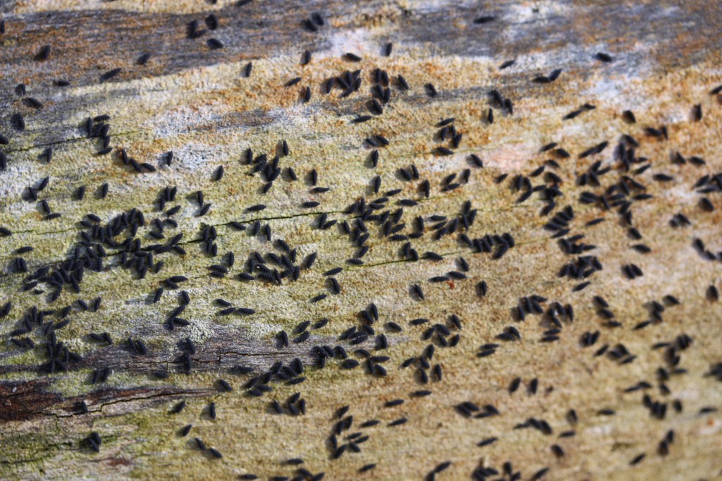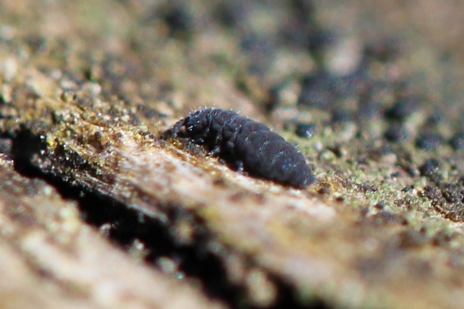 This past winter* I encountered them where they are most often seen, even without any sort of magnifying equipment: bounding by the millions atop the snow. While at Algonquin’s Mew Lake Campground, I observed these tiny pinpricks of dark life in stark contrast against the bright white snow. In this context, these Springtails are called “snow-fleas”, and it’s easy to see why. The tiny creatures are about the size of fleas and hop about with amazing ability. Springtails are not fleas, and leap about not by their legs but by a “spring-like tail” that curves under their body and can launch them through the air.