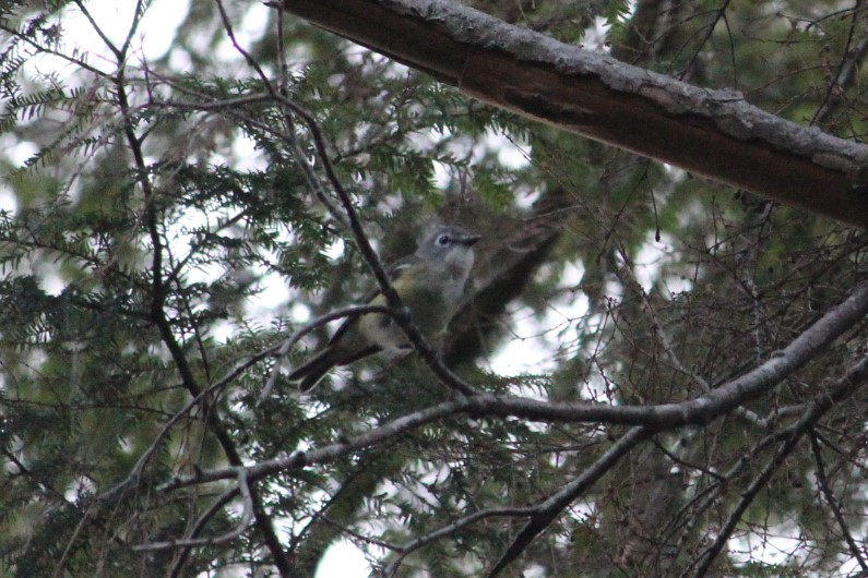 I had decided to head to the Peck Lake Trail, because as the name implies, it circles a Lake and I thought it might afford some nice views in the morning mist, and some rare creatures to photograph. The first Bird I photographed on the trail was one I had never seen before (or at least never captured with my camera): the Blue-headed Vireo (Vireo solitarius).