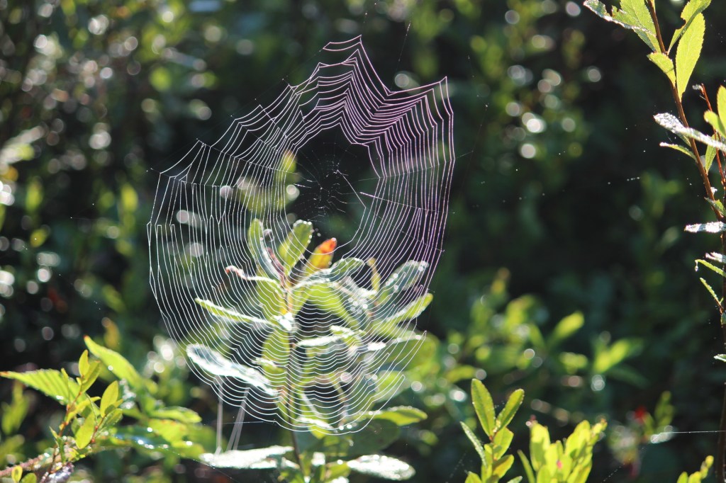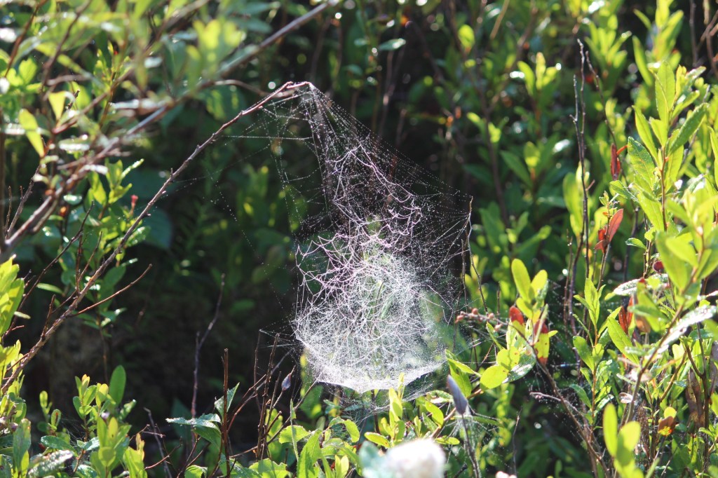 The final observations on the trail were several Spider webs caught beautifully in the early morning light. I recently read a passage in the book Spider Communication which gave me a new appreciation for Spider Webs. “Many spiders have compensated for the absence of a suitable substrate over which a vibratory signal can be conducted…by extending the perceptual range of the legs with a silken structure…Suddenly the radiating shape of the web takes on a new meaning for the observer: the web extends the perceptual range of the sense of vibration from about 15 mm to more than 500 mm” (Witt, 1982). Not only do they act as prey-catching snares, but they are sensory extensions of the Spider, extending their senses beyond the limitations of their small bodies. Fascinating, beautiful constructions.