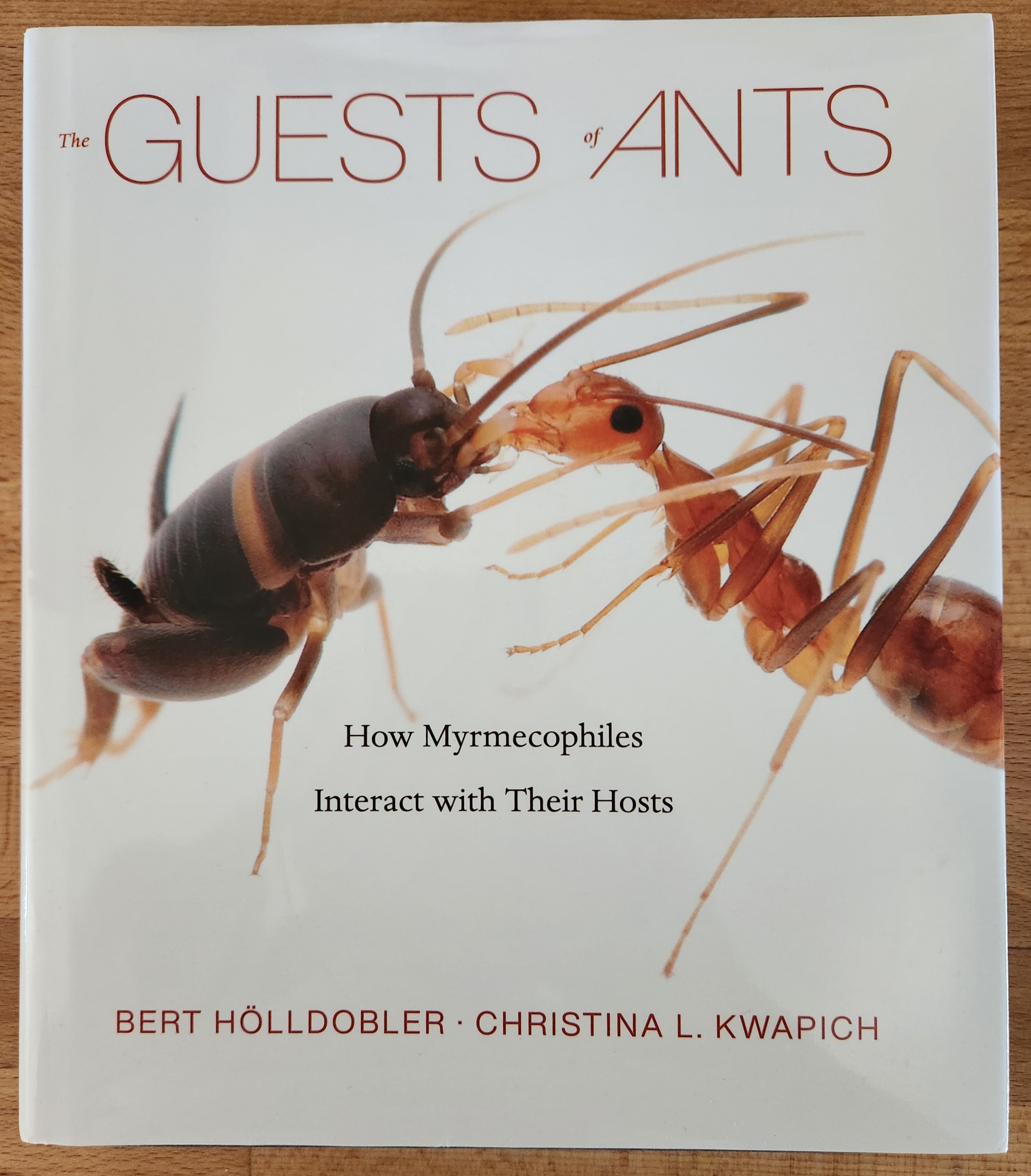 This is the most recent addition to my list of amazing ant books, published just a couple years ago in 2022. The images within are astounding, I found myself gasping as I turned pages to come across beautiful photographs of behaviour rarely seen. This tome is focused on the adaptations and behaviour of “Myrmecophiles”. It’s hard to define myrmecophile* because the interactions range from parasitic organisms dependent on killing their hosts (ant-decapitating phorid flies for instance) to beetles that appease their ant hosts with nectar secretions in exchange for a safe stay within an ant nest. So much is unknown about these complex interspecific interactions and the mysteries unfold in incredible stories throughout this book, leaving me wanting a sequel.