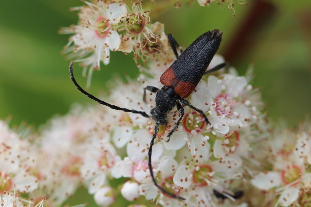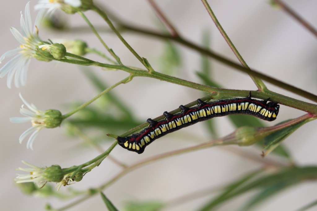 One other wasp was observed not on a flower, but on the branch of a tree, its bold coloration catching my eye. The Spotted Cuckoo Spider Wasp (Ceropales maculata) is another wasp which doesn’t create its own nest. Like the Parasitic Aerial Yellowjacket described above, this wasp usurps the nest of another related wasp, this time a non-parasitic Spider Wasp (Pompilidae). C. maculata lays an egg in the host’s captured prey (a spider) before the host buries her prey along with her own egg. Within the host’s burrow, the Cuckoo Spider wasp egg hatches and the hungry larva consumes the host’s egg and the captured spider (Holm 2021).
