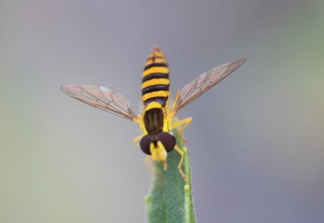 Bordering the lake were several patches of flowers, which were visited by many wasps, bees and flies (many of which resembled wasps or bees themselves). Bumblebees were abundant, and there were a few wasp-mimicking flies among them. Both pictured below are members of the Flower Fly family (Syrphidae).