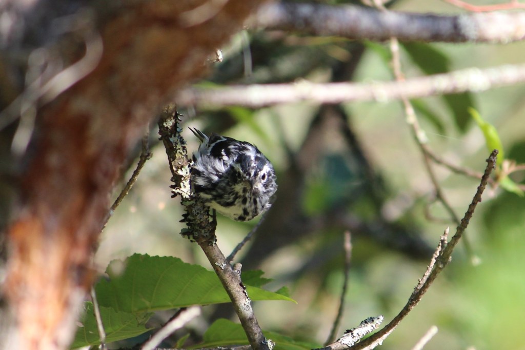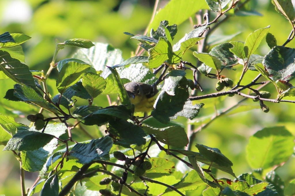 Among the branches above, I encountered two more wood-warbler species, not seen at the warbler river in Pog Lake (See Warbler River (Algonquin Observations August 2023, Part 3)). The Common Yellowthroat (Geothlypis trichas) is a bird that I associate with the wetlands of Long Point, not the woodlands of Algonquin, but Ron Tozer in Birds of Algonquin Park (2012), states “Probably the most widespread warbler, it is common in wet brushy habitats, weedy fields, and marshes through most of North America.”