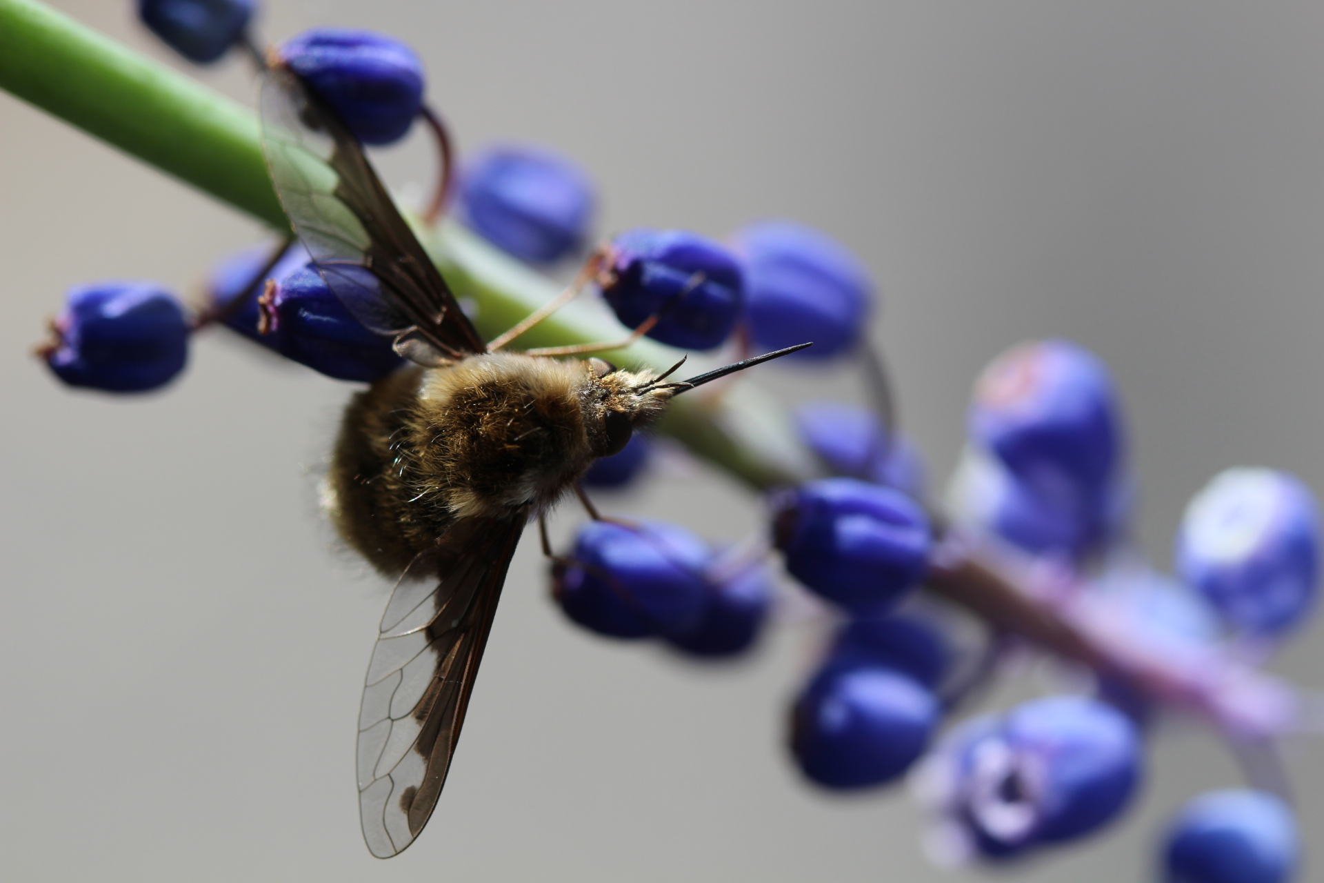 Despite its large and striking appearance, this formidable fly does not bite or sting people and should only be feared by its prey: Carpenter Bees (Xylocopa spp.). The Tiger Bee-Fly lays its eggs near Carpenter Bee nests, and the larvae make their way inside to consume the bee larvae.