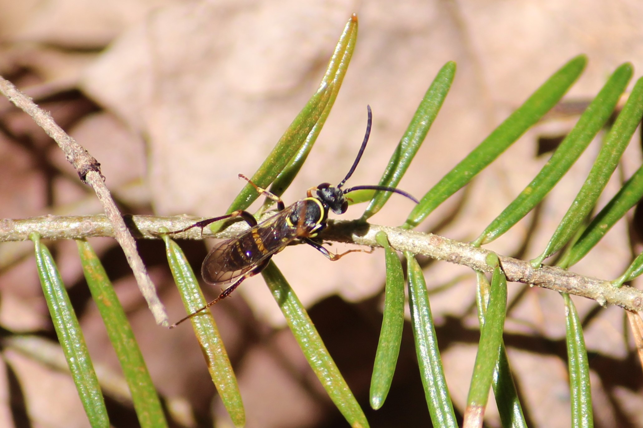 Five-Banded Thynnid Wasp (Myzinum quinquecinctum), Backyard, July 2024: