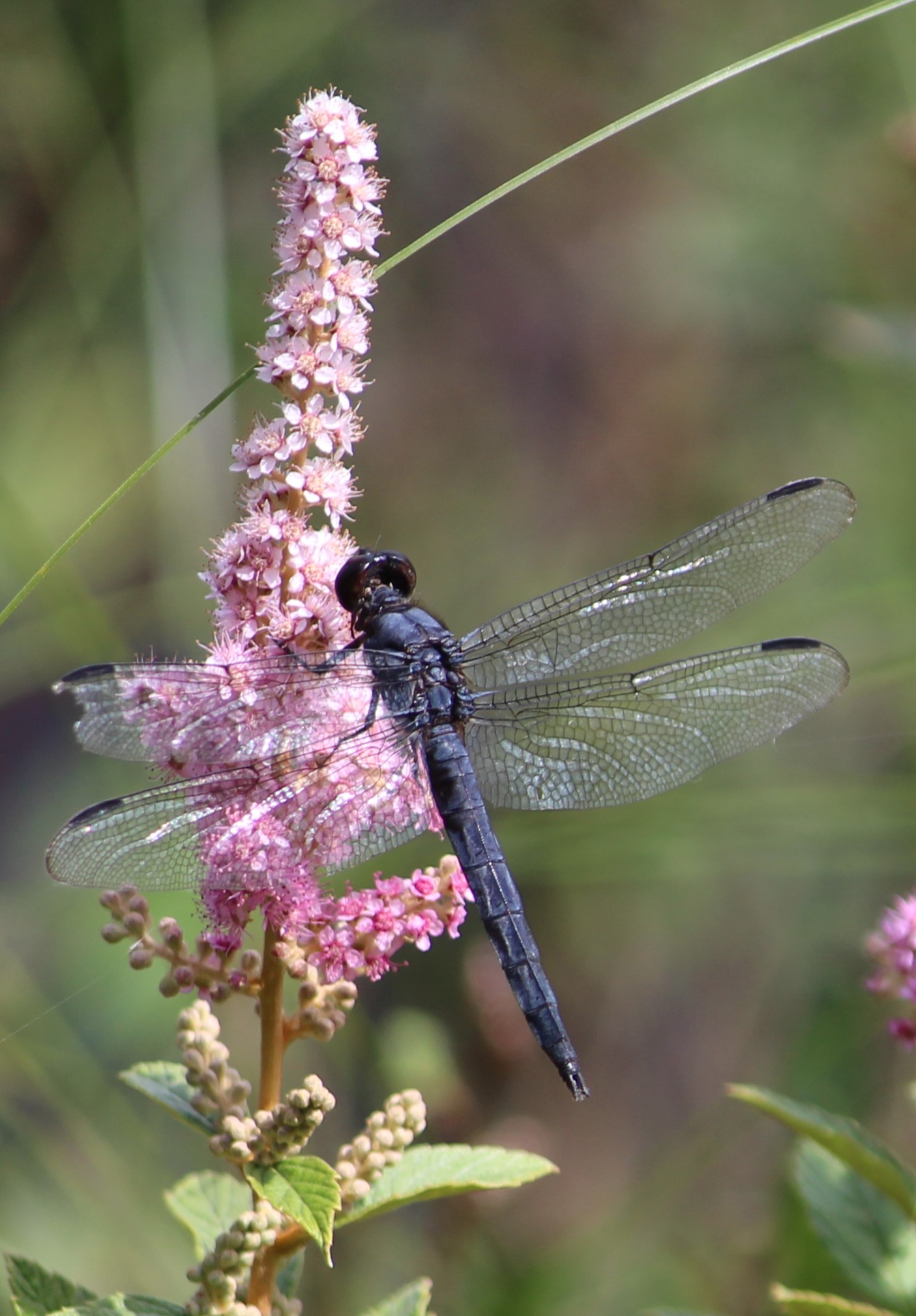 Standing still, the illusion is not very convincing, but when this little moth was in constant buzzing motion, hovering from flower to flower, the resemblance to a wasp was impressive (specifically the Great Golden Digger Wasp, Sphex ichneumoneus). The mimicry helps keep this moth safe from predators which hesitate to interfere with a stinging wasp but would love to snack on a harmless moth. As with several other insects on this list, the Squash Vine Borer feeds on squash, cucumbers, gourds, or pumpkin during its larval stage, giving some indication of what we were growing in our garden this past summer.