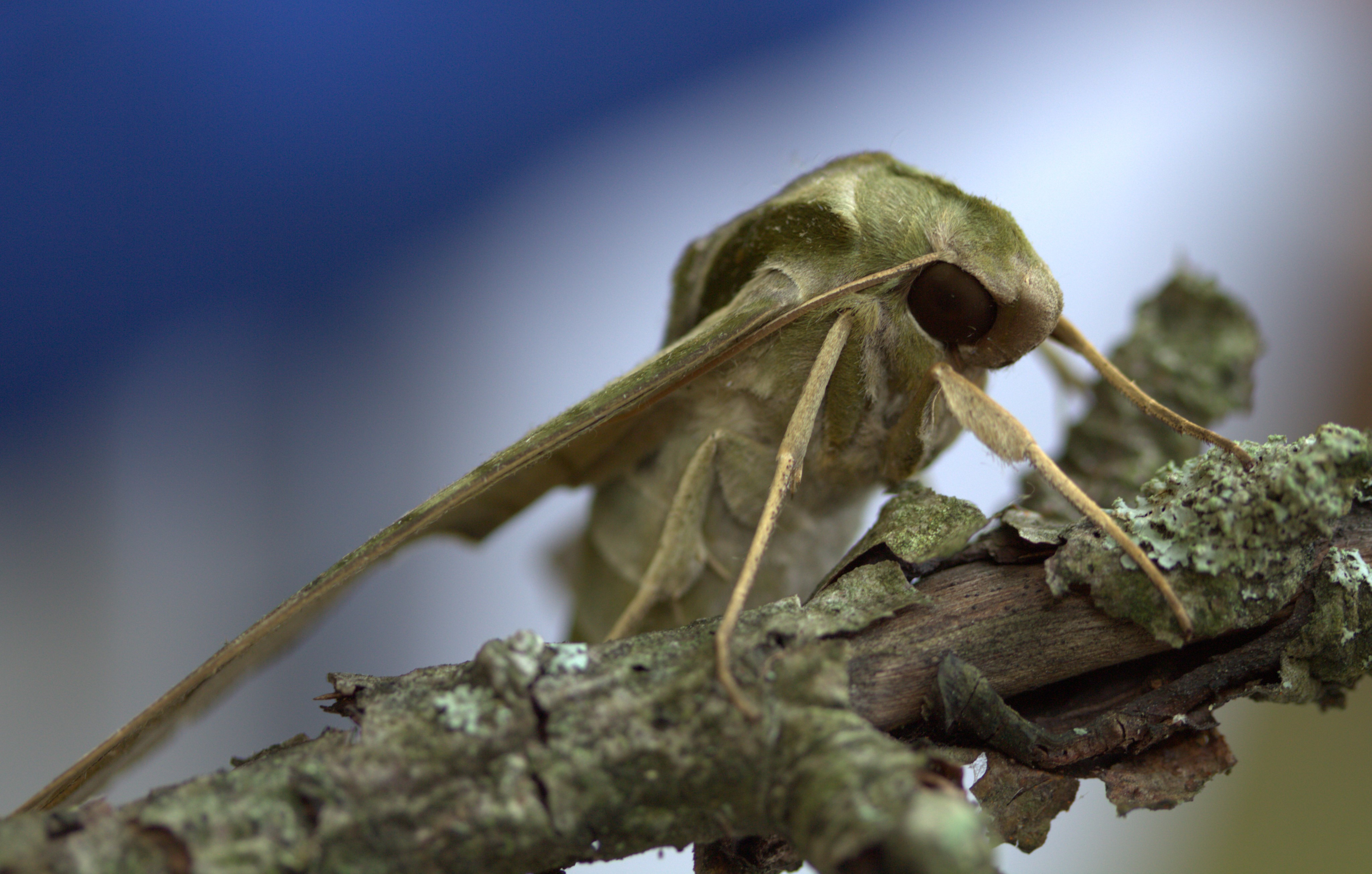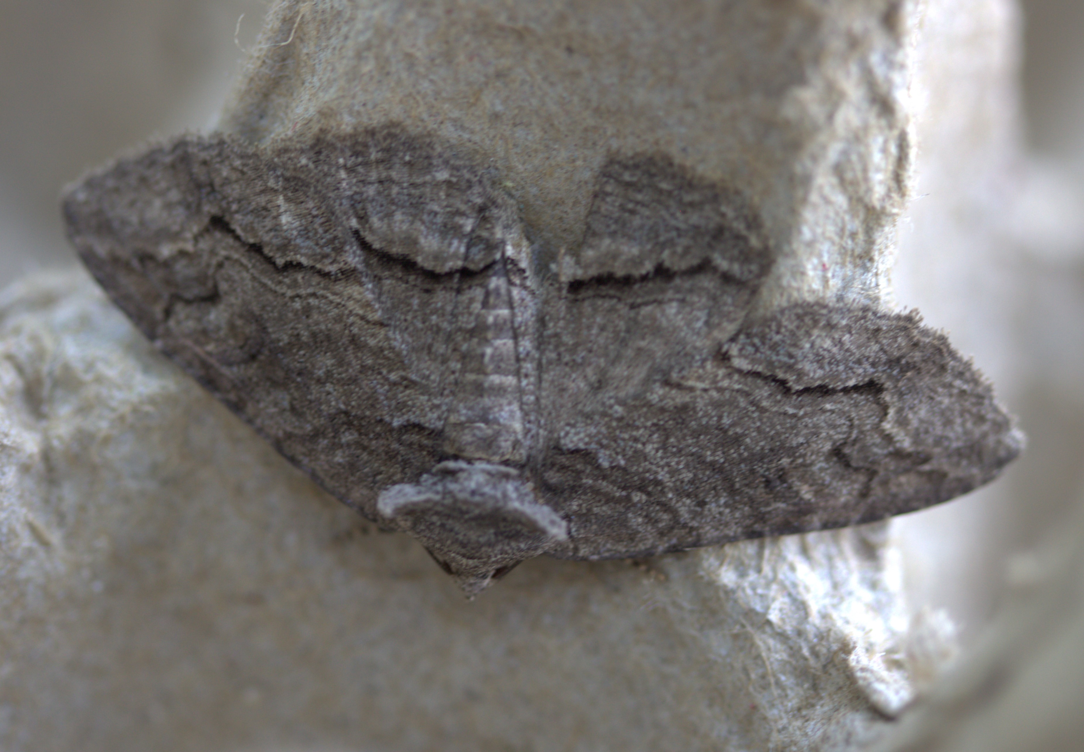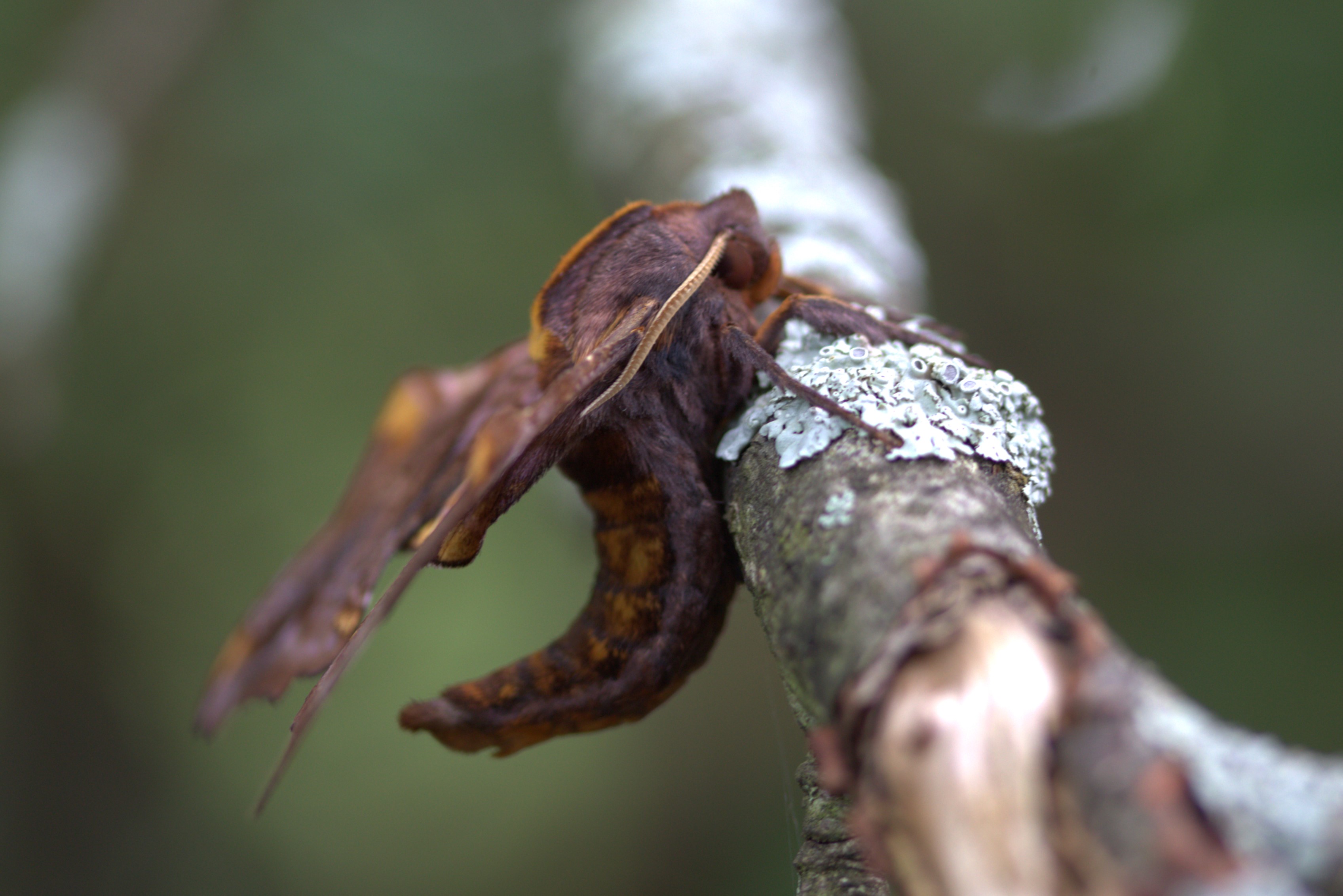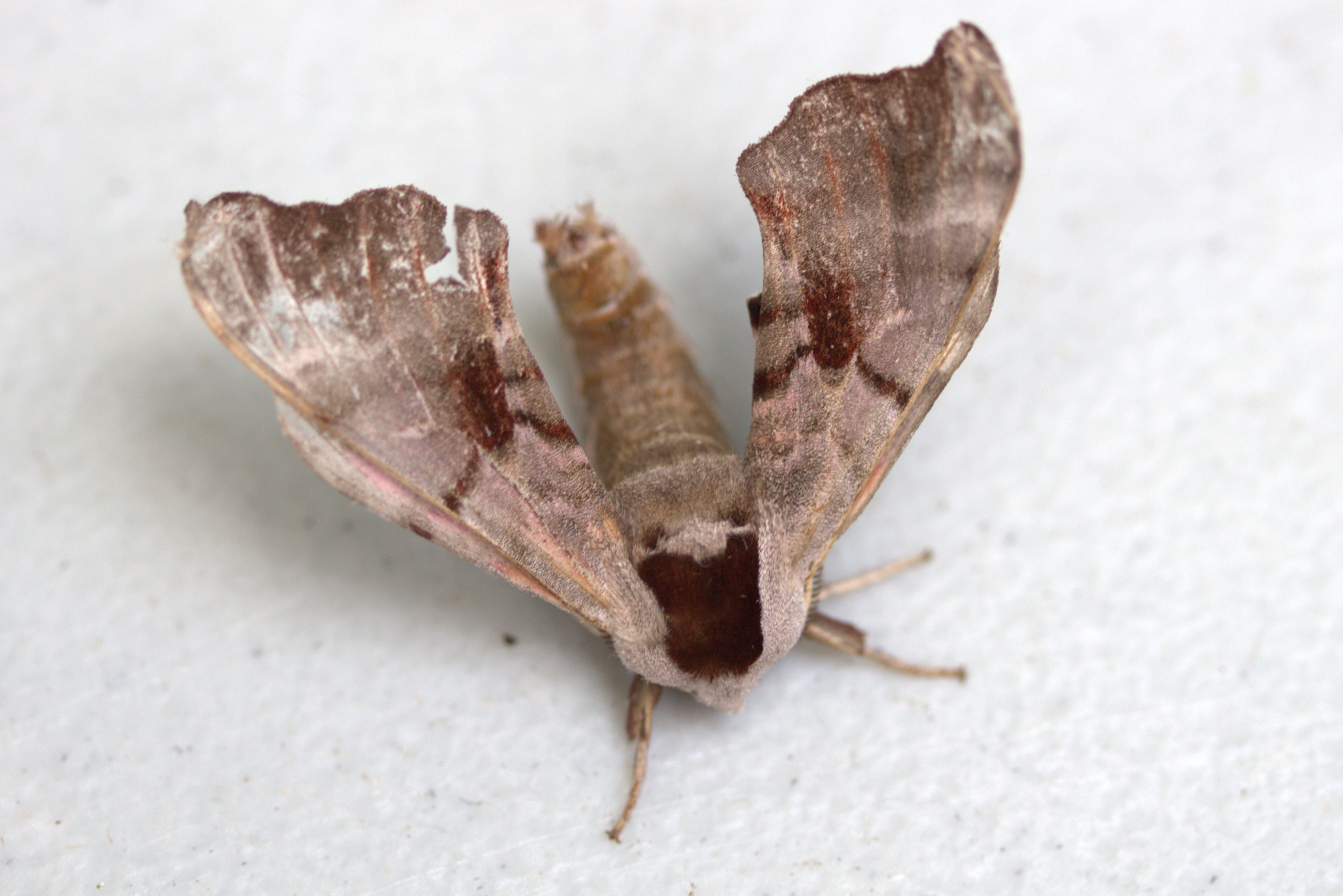 Sphinx Moths, or Hawk Moths (Family Sphingidae) are some of the largest moths in our area and are quite stunning to see. This family includes almost 1500 named species worldwide, and some very surprising members such as the Hummingbird Hawkmoths which are day-flying nectar feeders that look shockingly like insect hummingbirds. Larval Sphinx Moths are often called “Hornworms” because of the projections on some of their heads which resemble horns. Some hornworms are well known for their destructive feeding habits such as the Tomato/Tobacco Hornworm (Manduca sexta). Adult Sphinx moths feed at flowers with their long proboscis (Beadle and Leckie 2012).