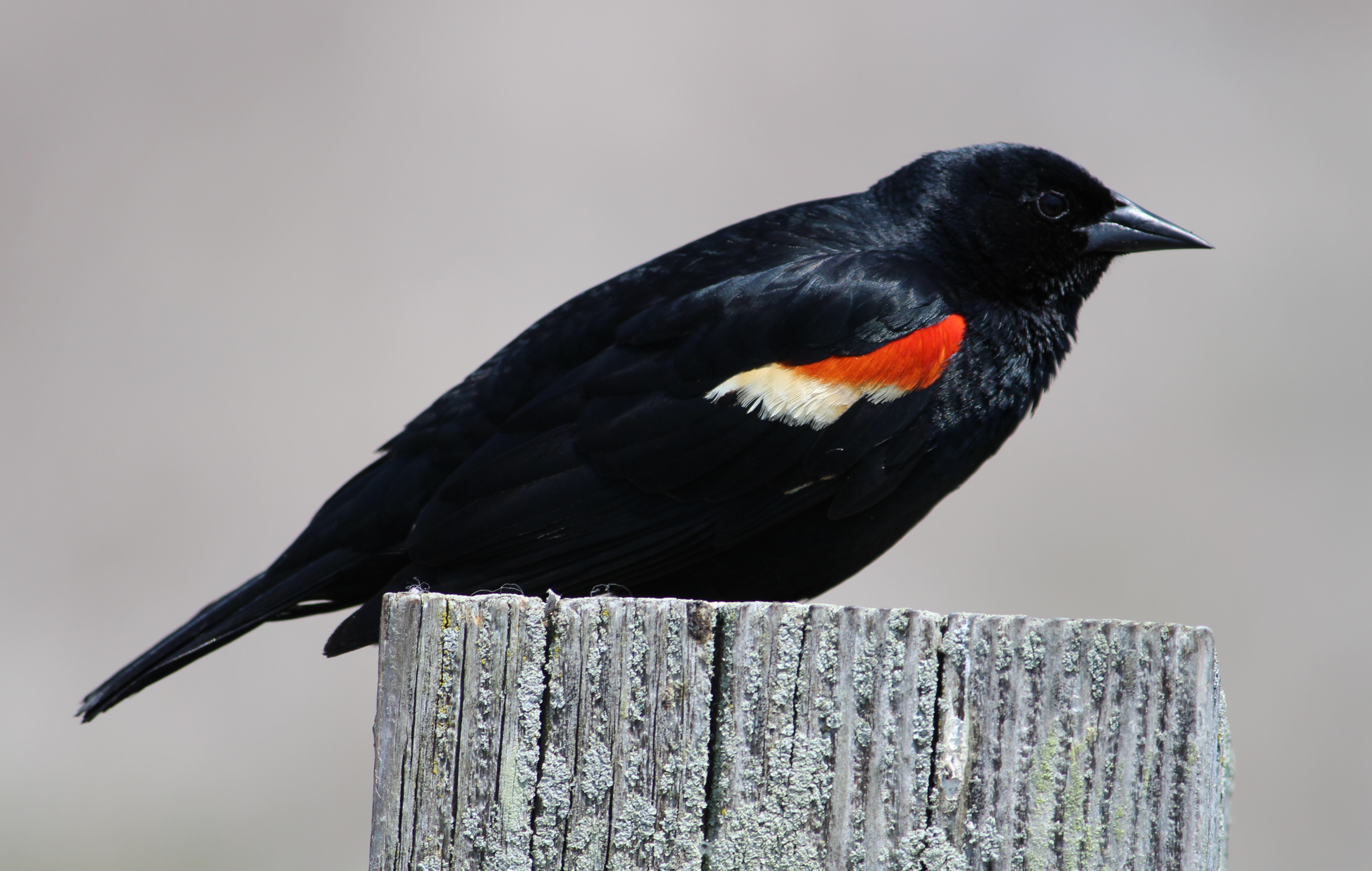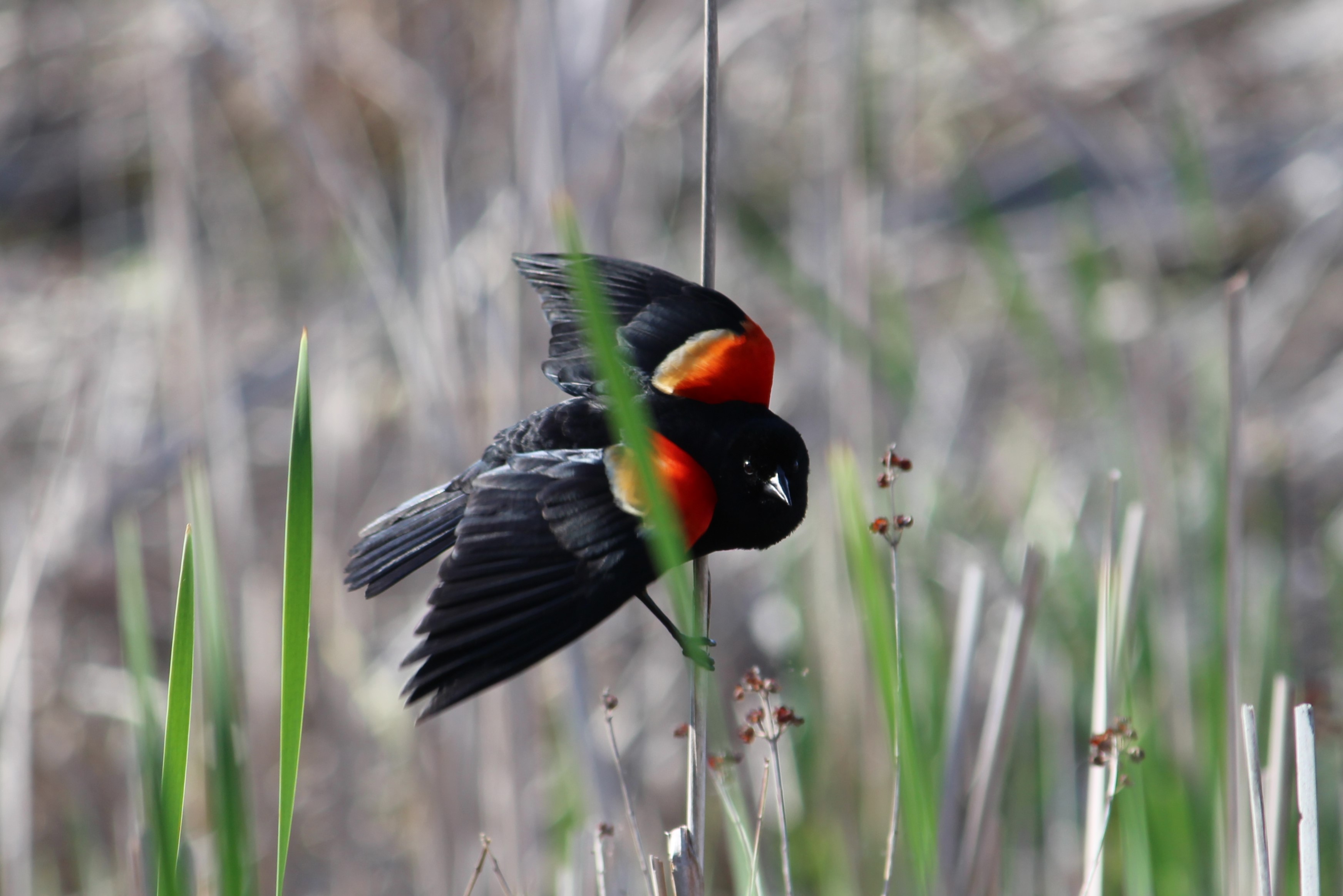 Not only are Red-winged Blackbirds abundant, they are also very noticeable thanks to their loud and frequent “Oh-ka-leeee!” calls and territorial behaviour. Males arrive earlier in the Spring to secure territories, and females arrive to survey the prospective male mates. Female Red-wings look strikingly different (we’ll see clear sexual dimorphism again with another species below), and it’s likely because the male and female blackbirds are under very different pressures from their very different behaviours. Besides being distinctly patterned, male and female Red-wings are also very different sizes, males being much larger. These differences are likely the result of the Red-winged Blackbird mating system, where male Red-wings fight and signal among themselves to establish territories and female Red-wings choose the male to join, but as always in biology, establishing the data is very difficult and there isn’t an easy answer. I’ve been reading The Red-Winged Blackbird by Les Beletsky and it’s fascinating how much research has been done on this widespread species, and yet even still there are so many mysteries about its behaviour and biology (Beletsky 1996).