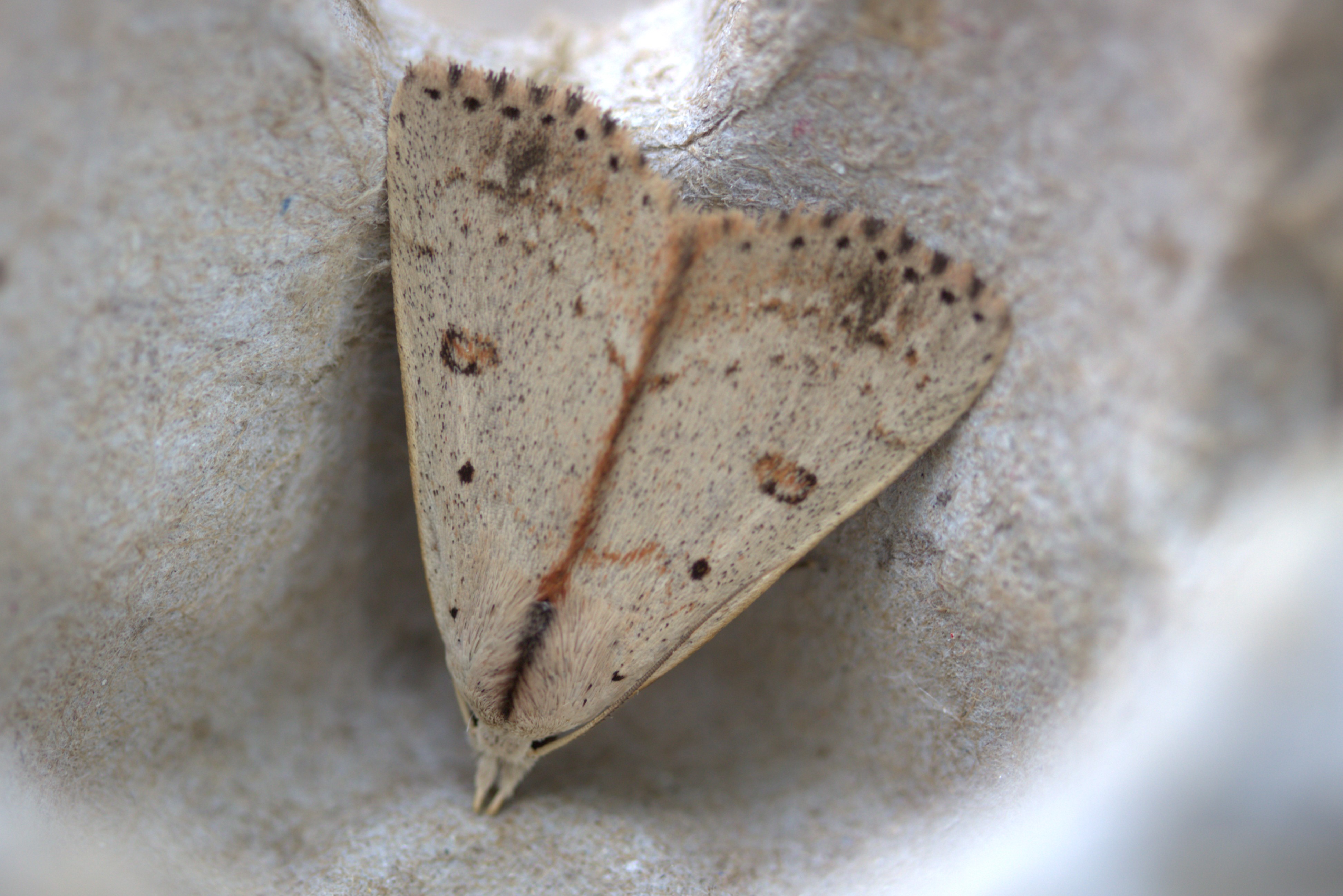 I believe this moth is of the genus Mythimna, but I’m not quite sure as it’s a fairly nondescript moth. The moths in this genus feed on grasses when larvae which would also line up with its discovery within my lawn (Beadle and Leckie 2012).