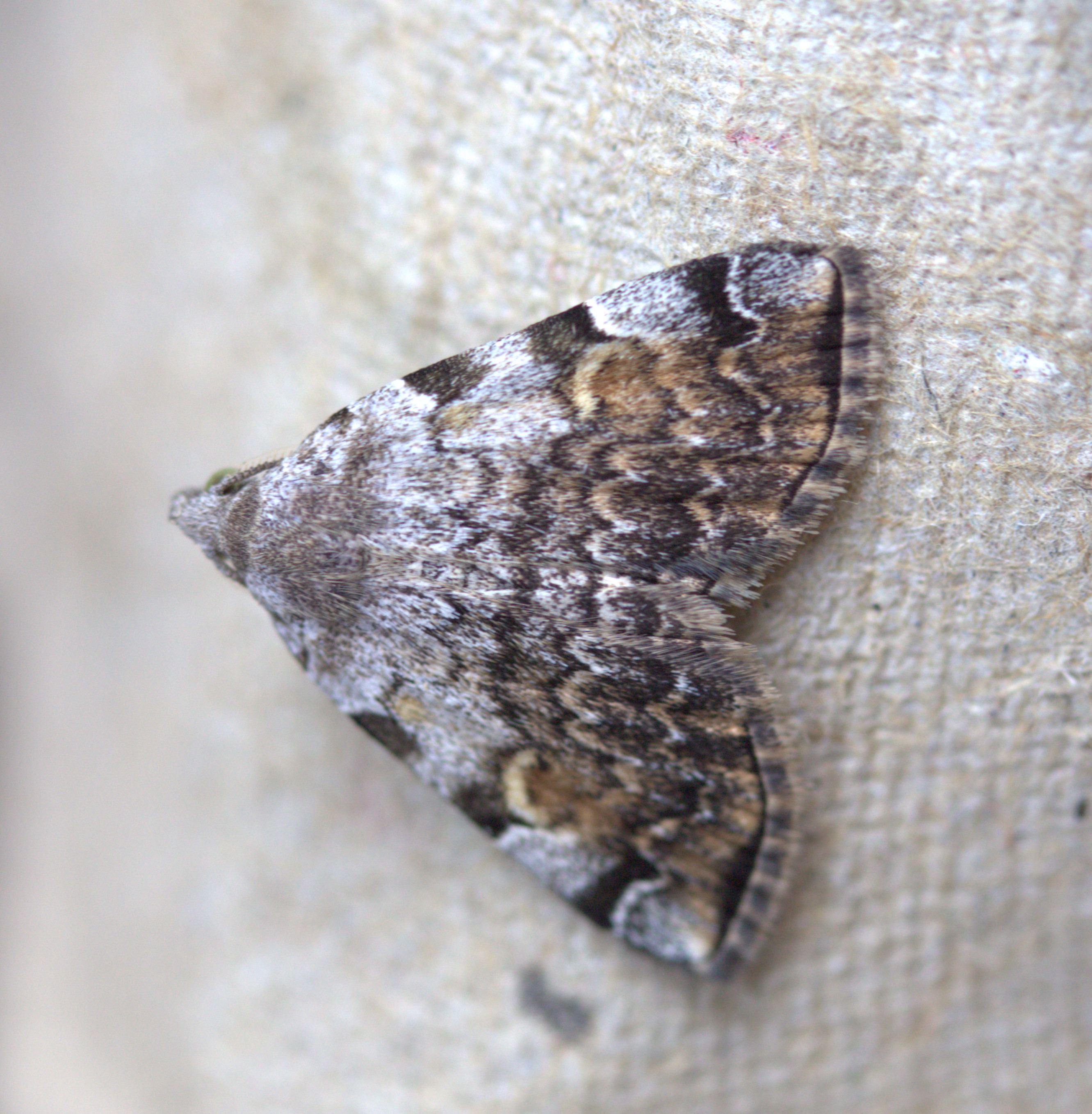 The Limacodidae are known as “Slug Moths” in reference to their bizarre caterpillars (see below). Although there are almost 2000 named species, many of them are tropical and I only observed one at the mothing event, the Skiff Moth. These moths feed on various trees and woody plants as larvae including “birch, blueberry, oak, poplar, and willow” (Beadle and Leckie 2012). Some slug moths (especially the tropical members of this group) have bristly spines that can give a nasty sting, but the Skiff moth larva doesn’t seem to have any of these venomous defenses, perhaps relying entirely on its strange non-caterpillar appearance for evading predation or disturbance.