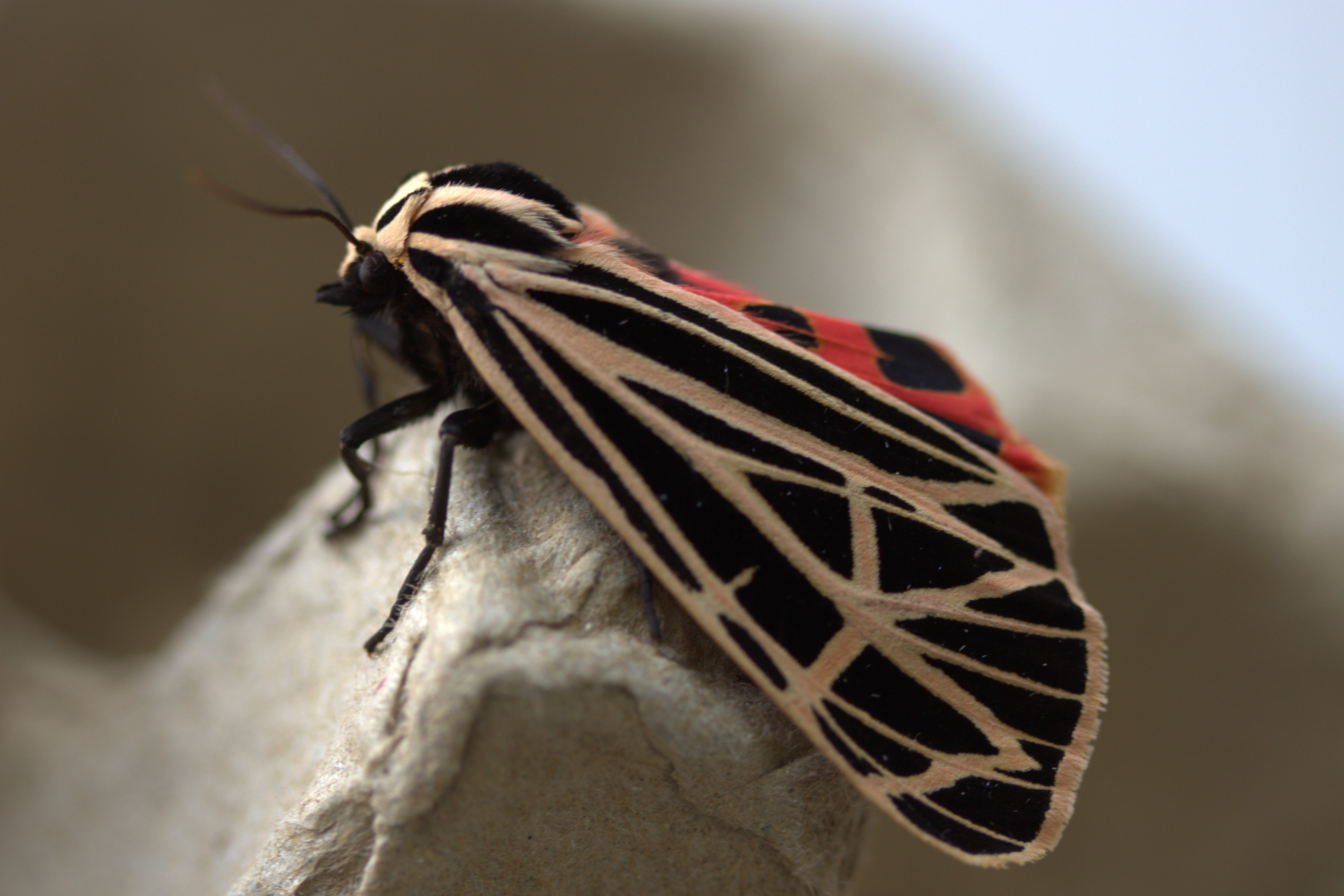 Moths in the Family Erebidae are widespread and diverse (in fact, they are the most speciose family of moths, with over 24,000 described species). They are some of the most colourful and fantastic night fliers, some of the most familiar and exotic moths. Perhaps the most commonly encountered Erebid moth in North America is the Spongy Moth (Lymantria dispar), because of its incredibly invasive caterpillars that have spread across the continent. Spongy Moths are part of the Tussock Moth group, known for their spiky caterpillars covered with long ‘tussocks’. One such moth is featured below, the Banded Tussock Moth. Another incredibly common Erebid caterpillar is the trundling Woolly Bear caterpillar, the adult moth is featured below (known in its winged form as the Isabella Tiger Moth). Another group of Erebids are known as Lichen Moths because their caterpillars feed on lichen. Another lichen-feeding species is featured below: the American Idia, a drab grey moth in contrast to the colourful pastels of its lichen-feeding cousin the Painted Lichen Moth. The Virgin Tiger Moth and the Giant Leopard Moth are two of the larger and more striking of the Erebid moths that I photographed. Other moths in this group are striking for their evocative names such as “The Herald Moth” or “Deadwood-borer Moth”. Another subsection of this family are known as “Underwings” because they have often brilliantly coloured wings concealed beneath their often drab forewings, the better to startle predators with when discovered.